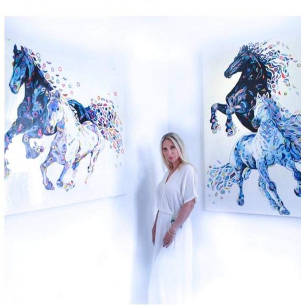 Irina Markova is a Russian-born painter who lives and works in Como, Italy; has always had art in her blood, since she was a child she has continuously and consistently followed specialized courses in portraitist, pictorial technique and drawing, then graduating from the Institute of Design in Russia. The artist has participated in numerous national and international artistic events, enjoying critical and public success. His artistic path is supported by a personal and experimental research ranging from the transformation of a material object into a completely abstract object such as the triangle, the circle, the rhombus ... following the concept expressed by V. Kandinsky "The form, even if it is completely abstract can resemble a geometric figure, has an inner sound ... " Horses and men with well definite musculature that seem carved in stone are already predisposed to a certain geometric shape. These become the artist's favorite objects. Irina's painting is her vision of the synthesis of a body covered with geometric embroidery that is destined to break down into pieces to arrive at a certain geometric simplicity such as a triangle, a circle, a rhombus ... They are very different from each other and have a meaning different that marks the inseparable relationship between mass, energy and light.